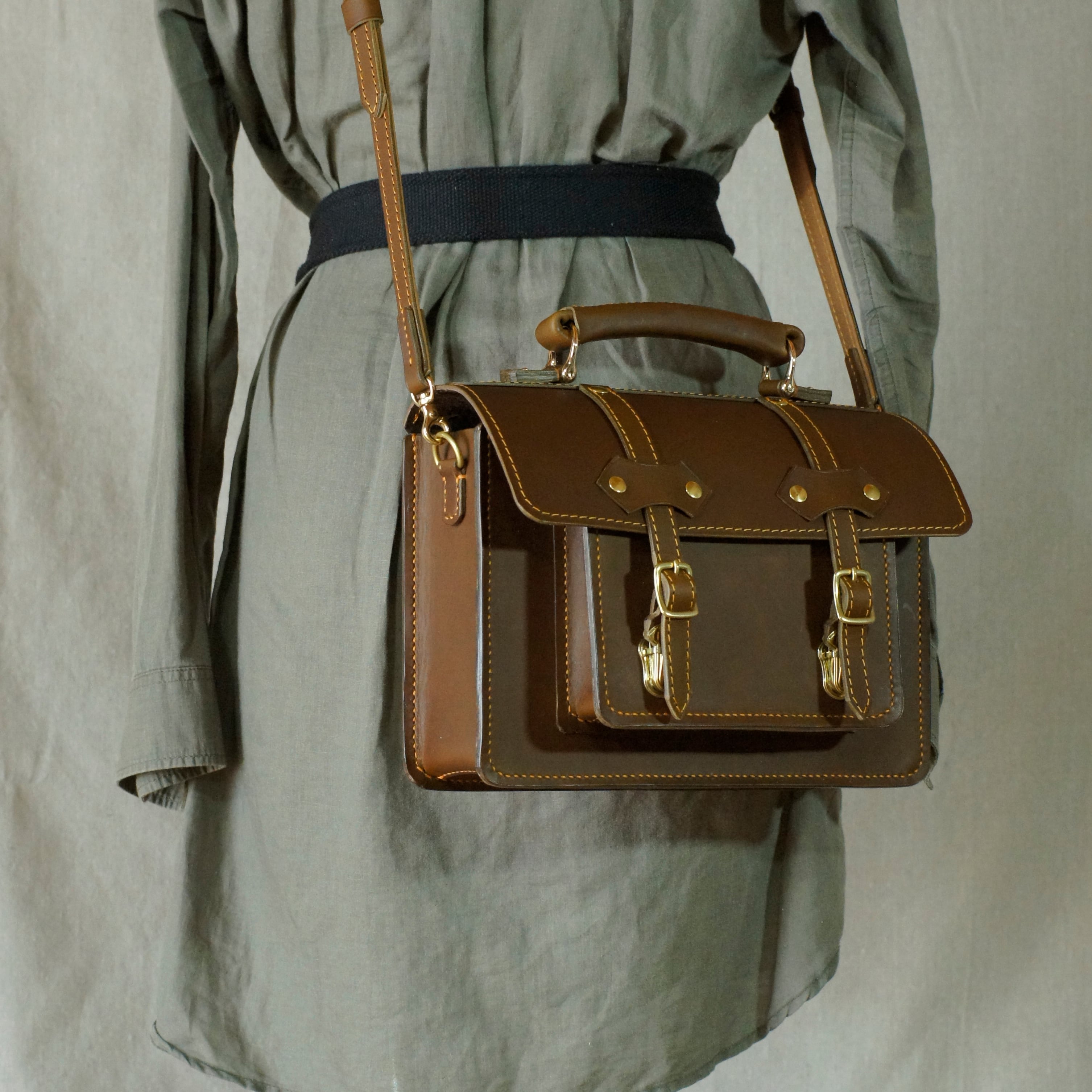 しっとりとした上質なプルアップレザーをサッチェルバッグに仕立てました。
