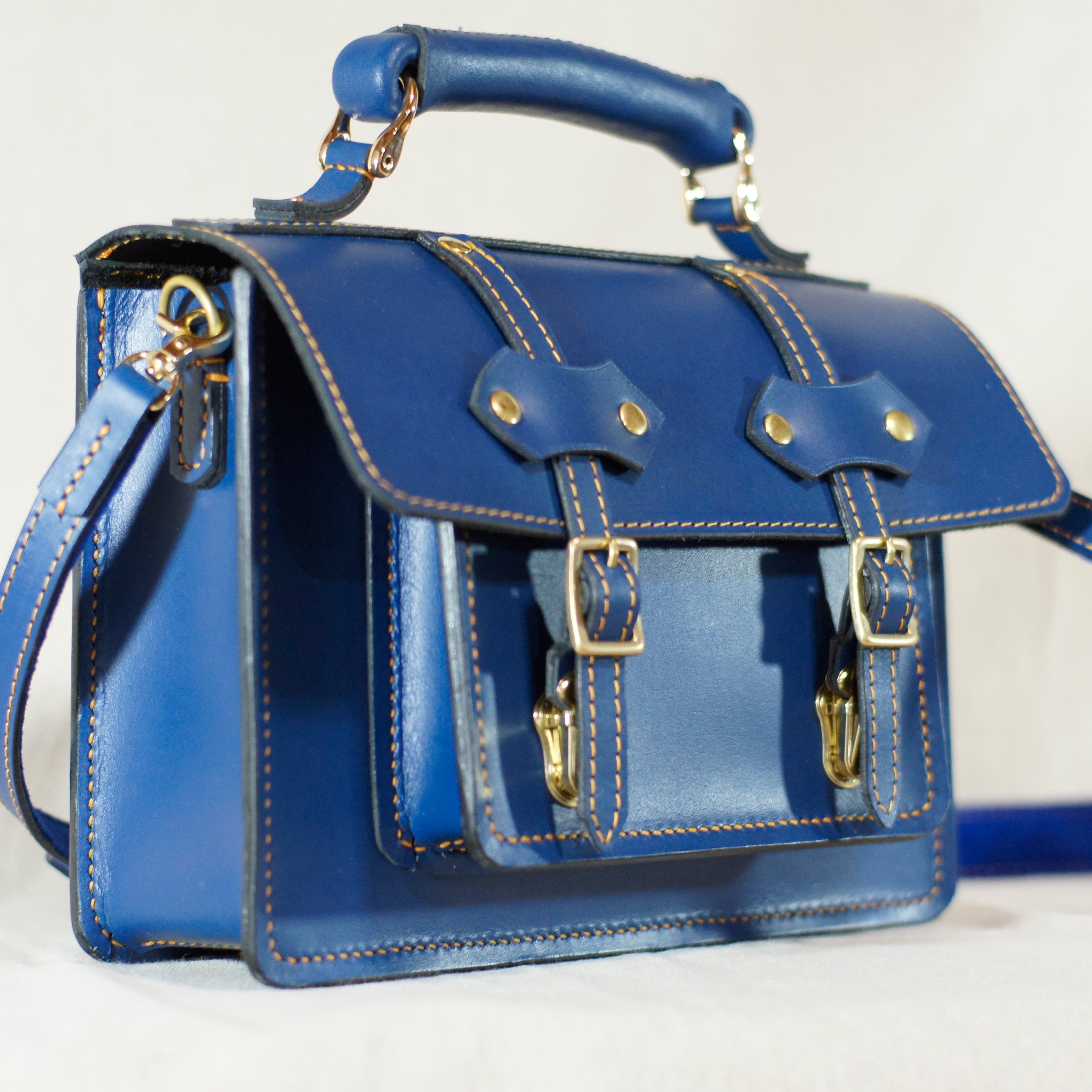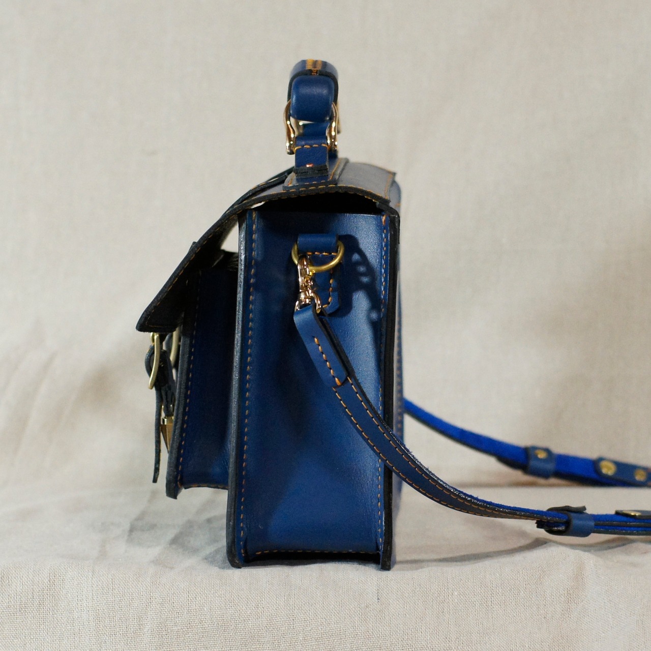 顔料仕上げの姫路レザーをサッチェルバッグに仕立てました、顔料染めは汚れや水シミが付きにくく普段使いの革製品には最適です。