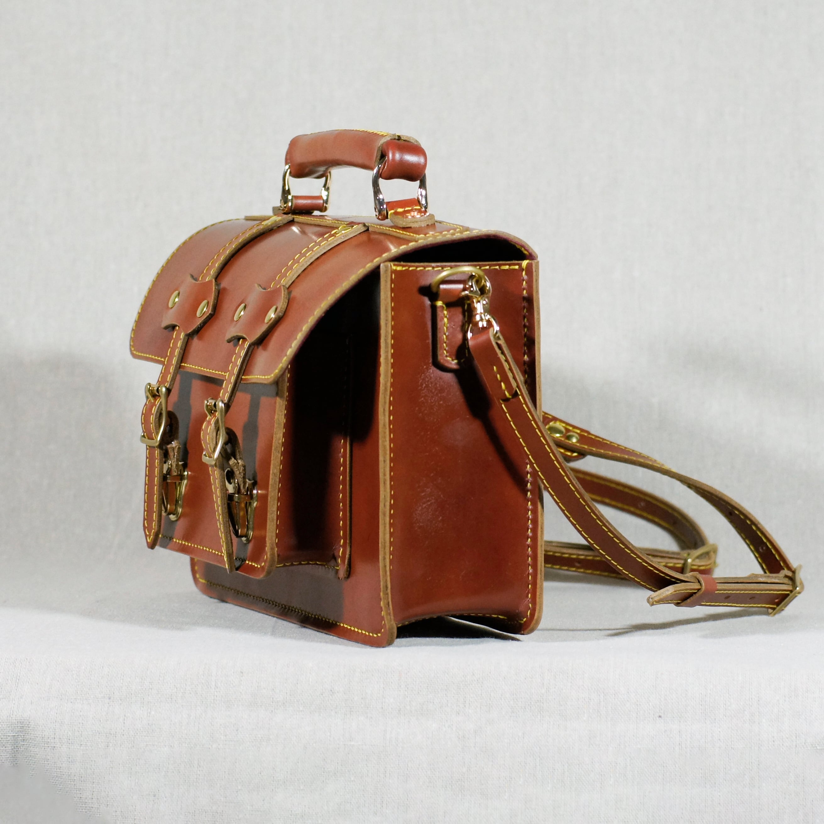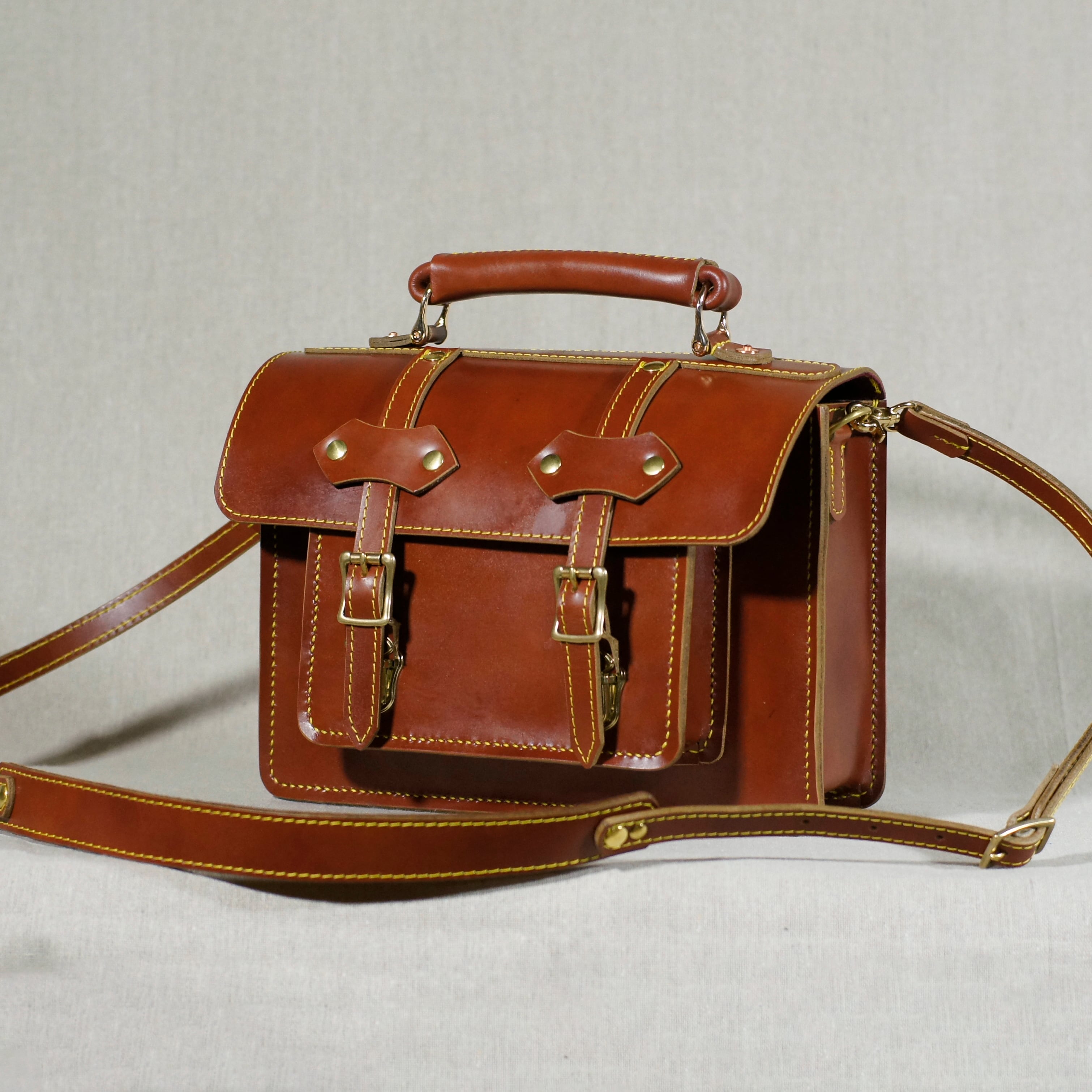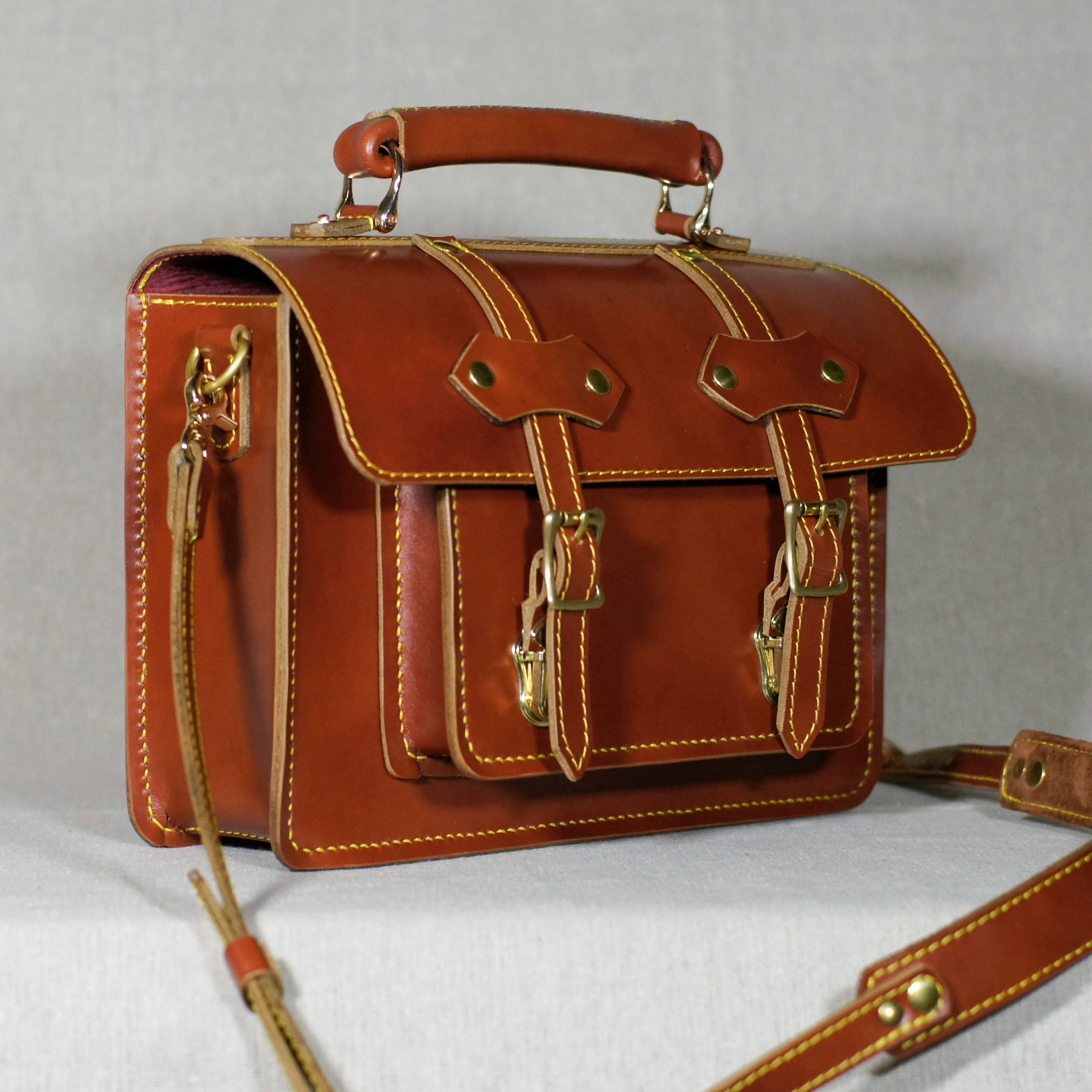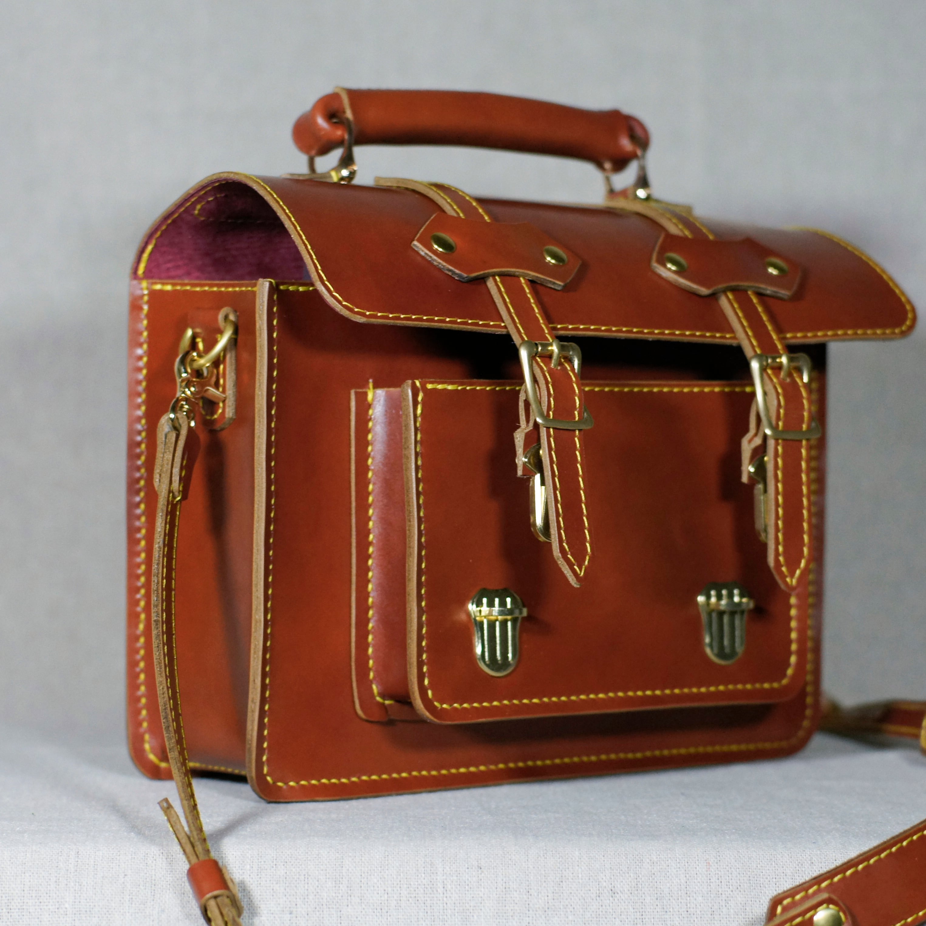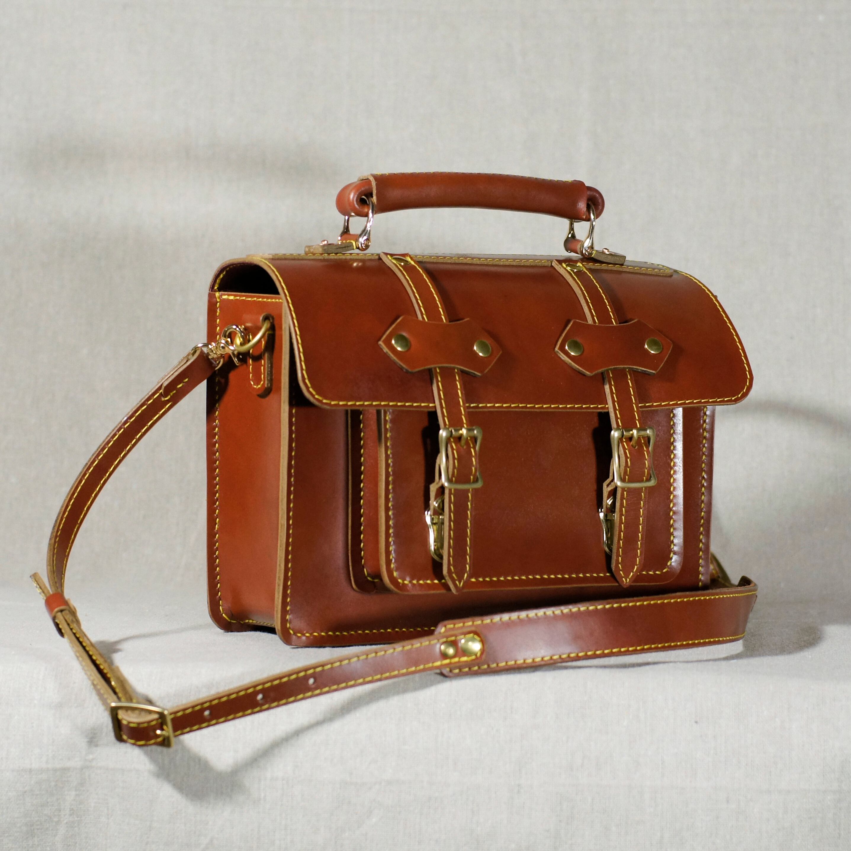 レッドブラウンのサッチェルバッグを再度仕立てました、自然な色ムラが鞄の魅力を引き立てます。