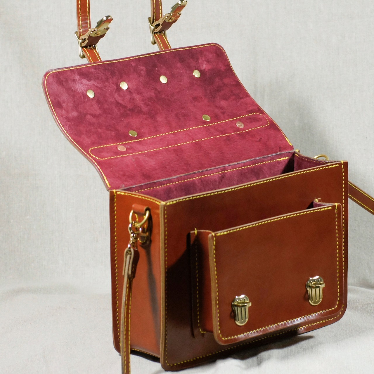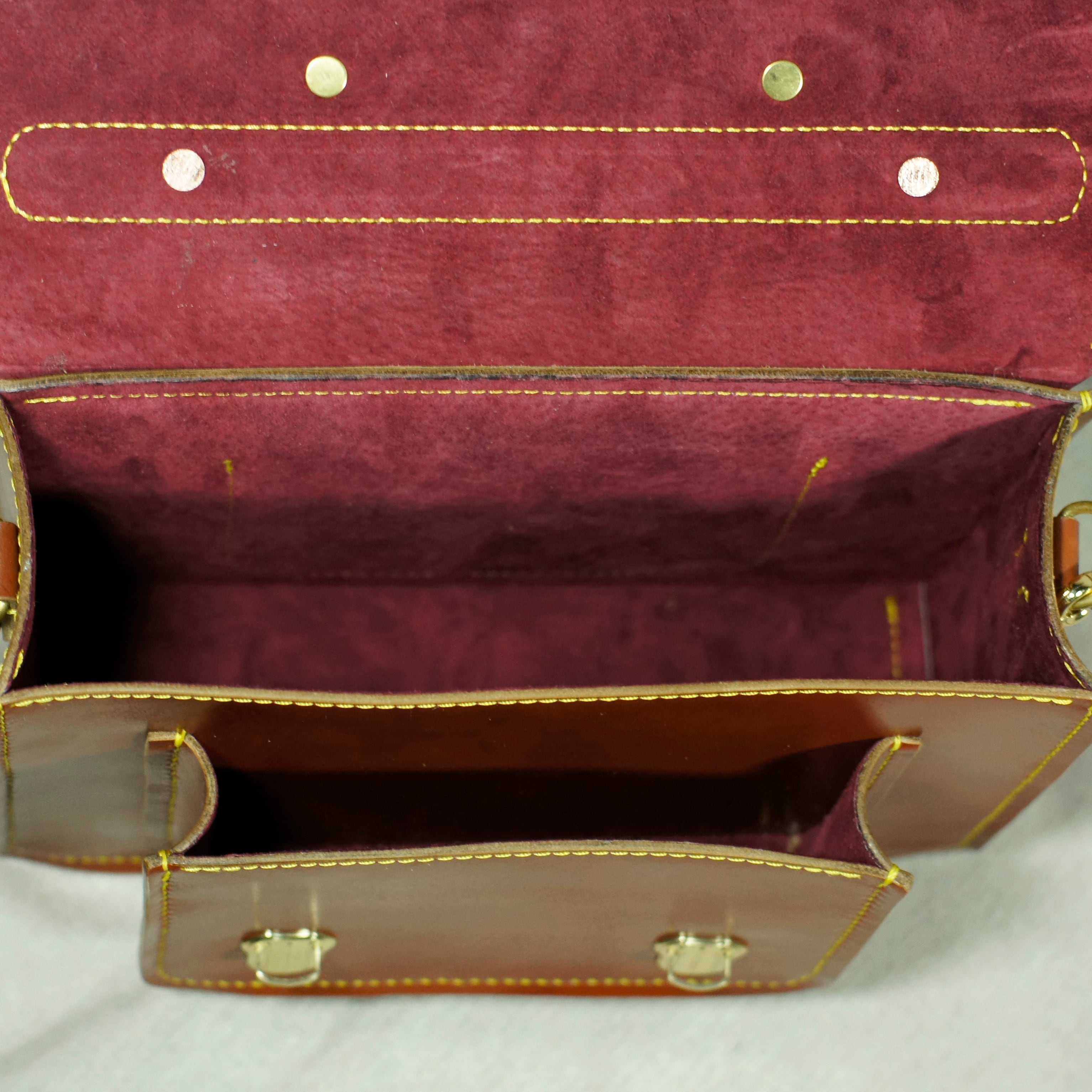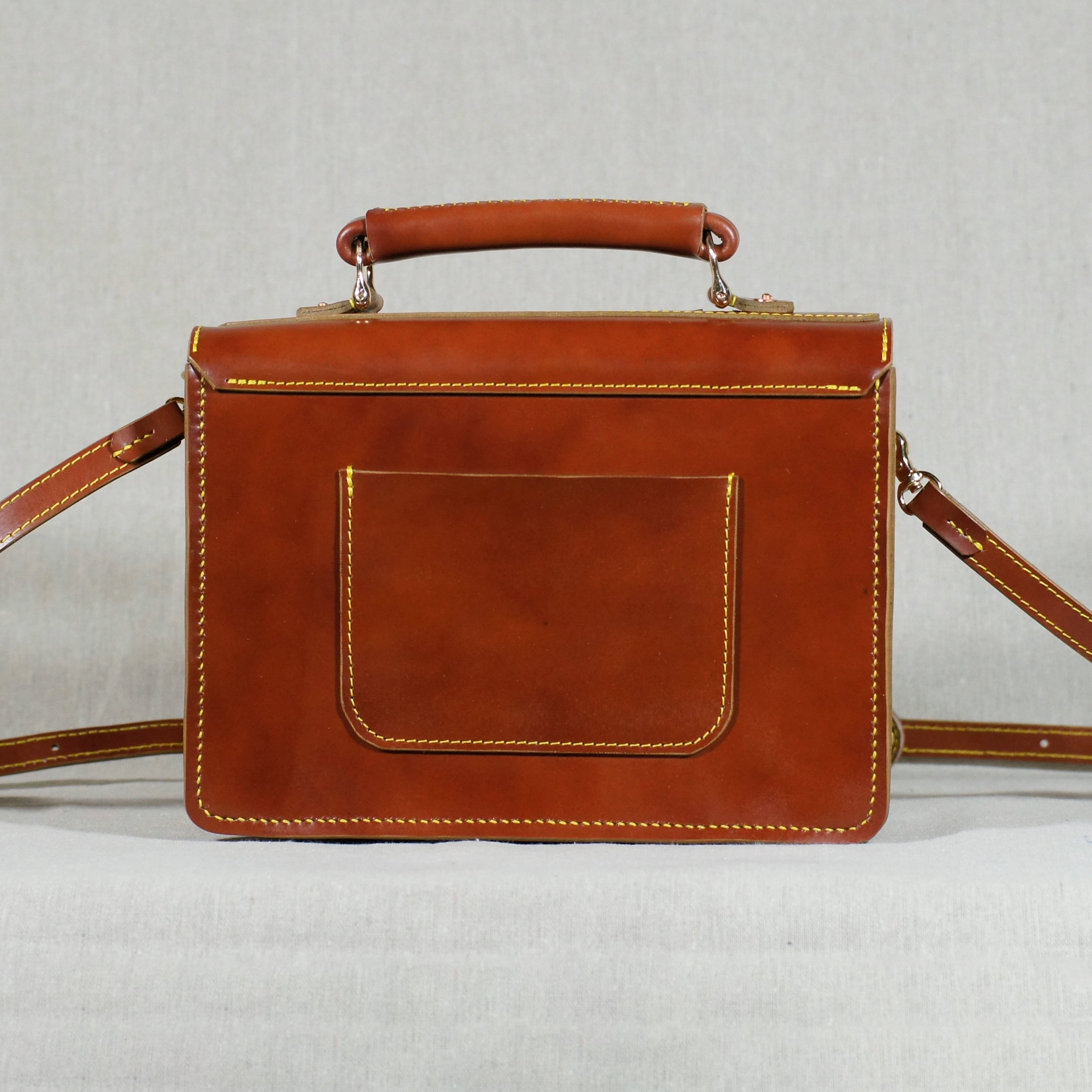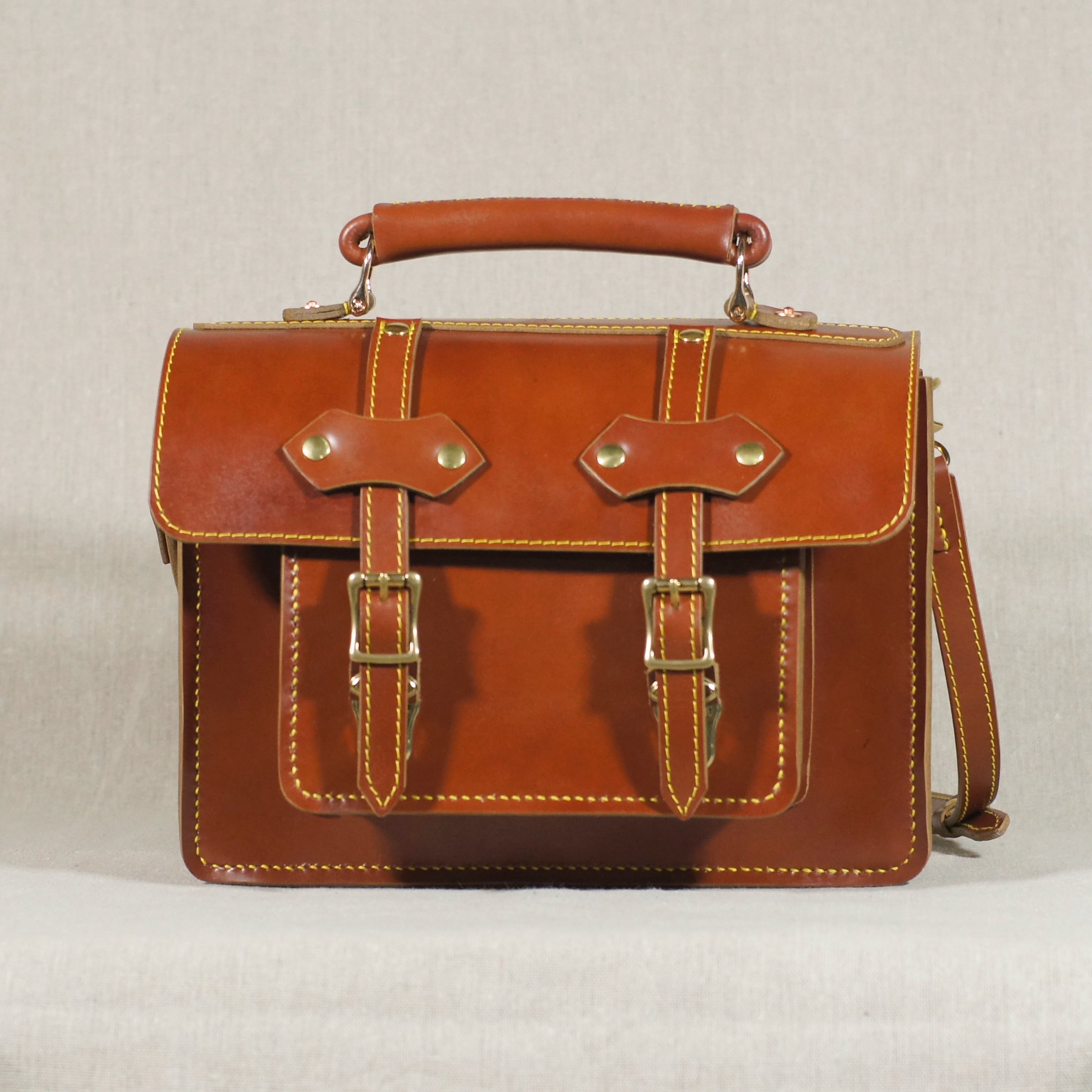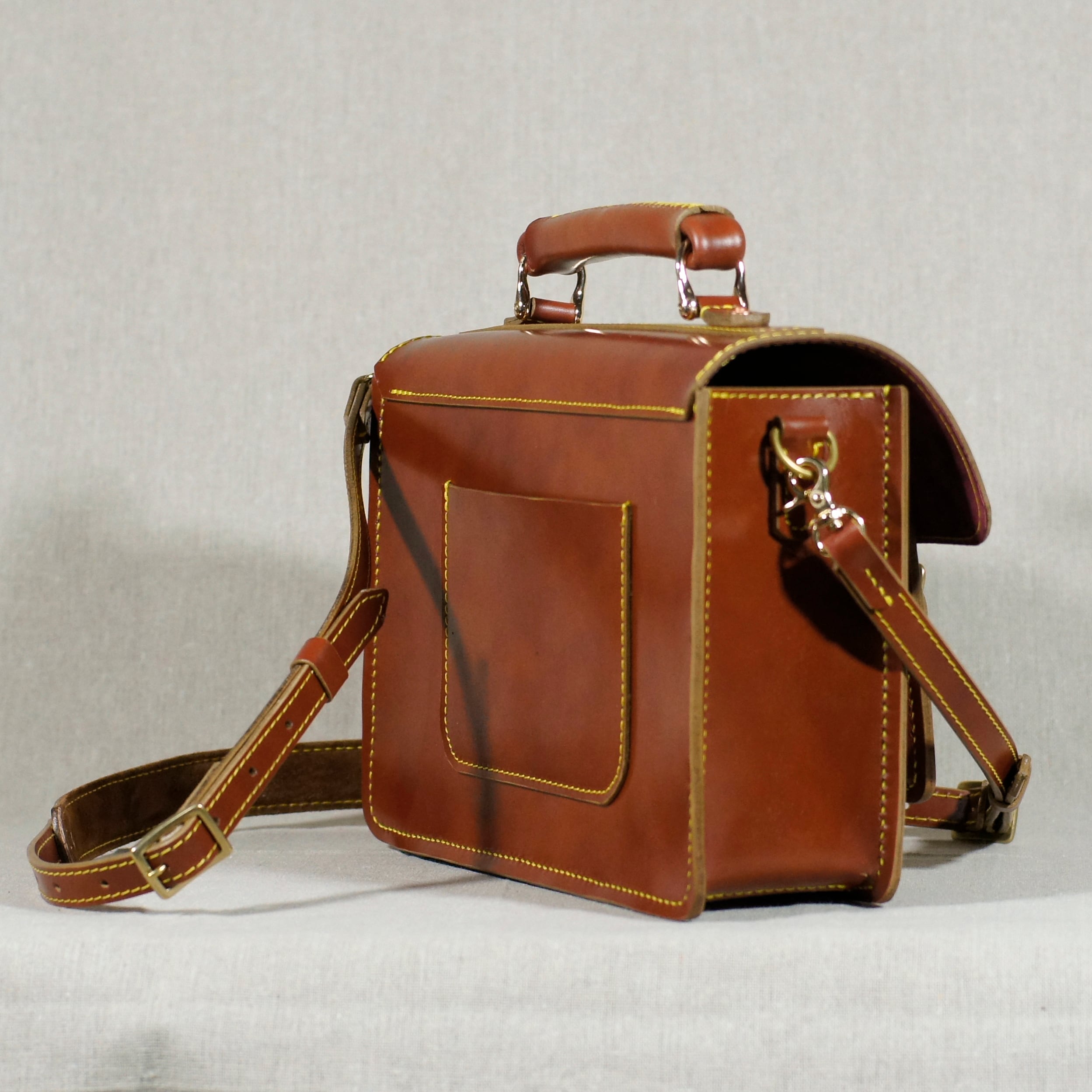 レッドブラウンのサッチェルバッグを再度仕立てました、自然な色ムラが鞄の魅力を引き立てます。
