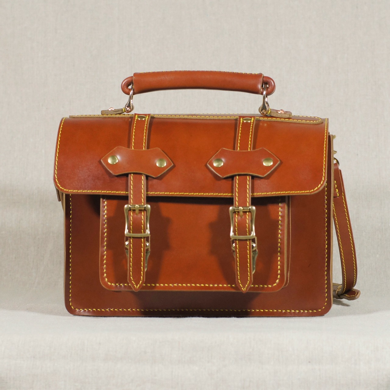 ショルダーベルト、持ち手も鞄本体と同じ革を使用して制作いたしました。