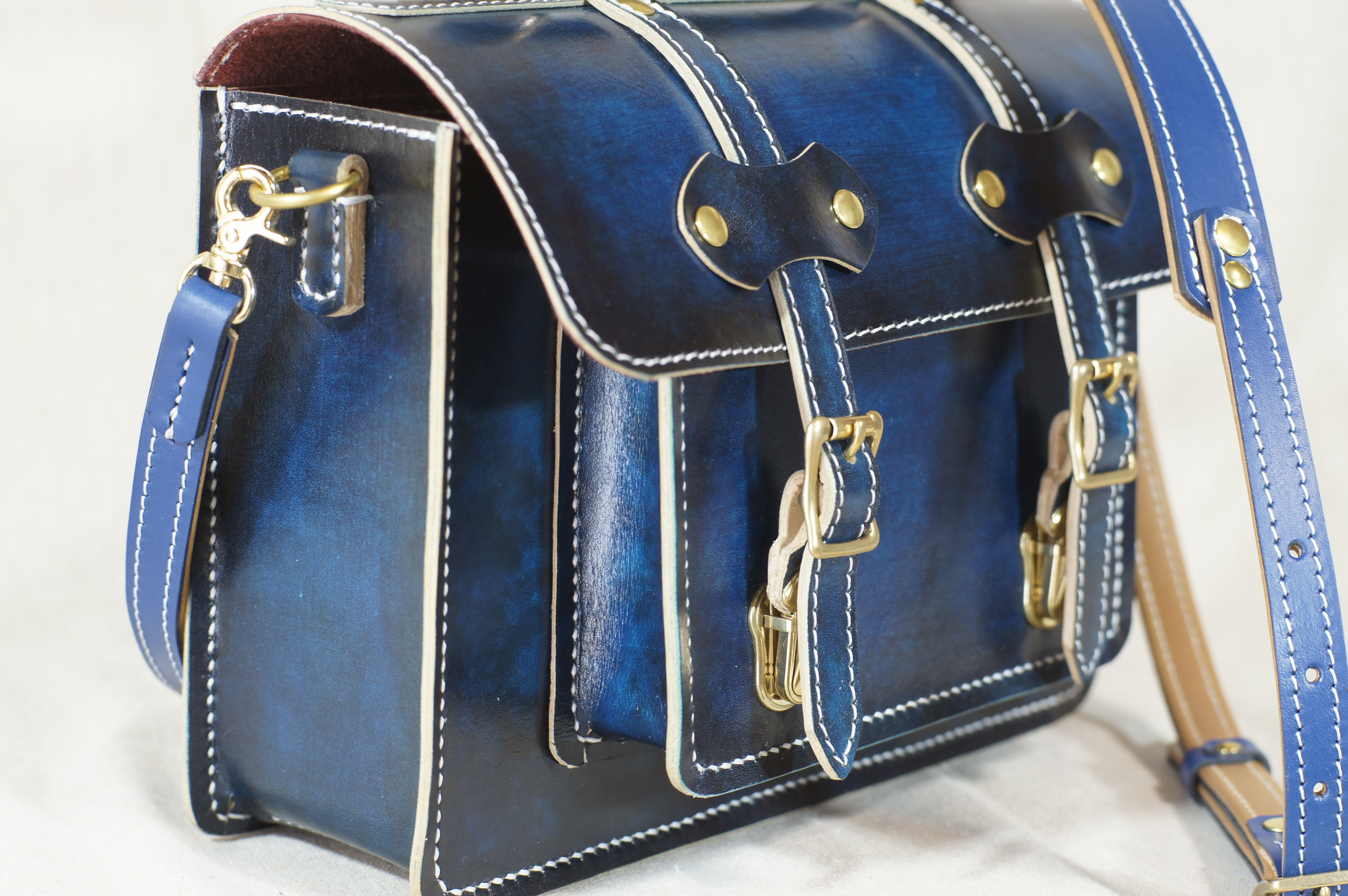 鞄本体のパーツの一つ一つ全て手作業でグラデーション染めを行った一点物です。