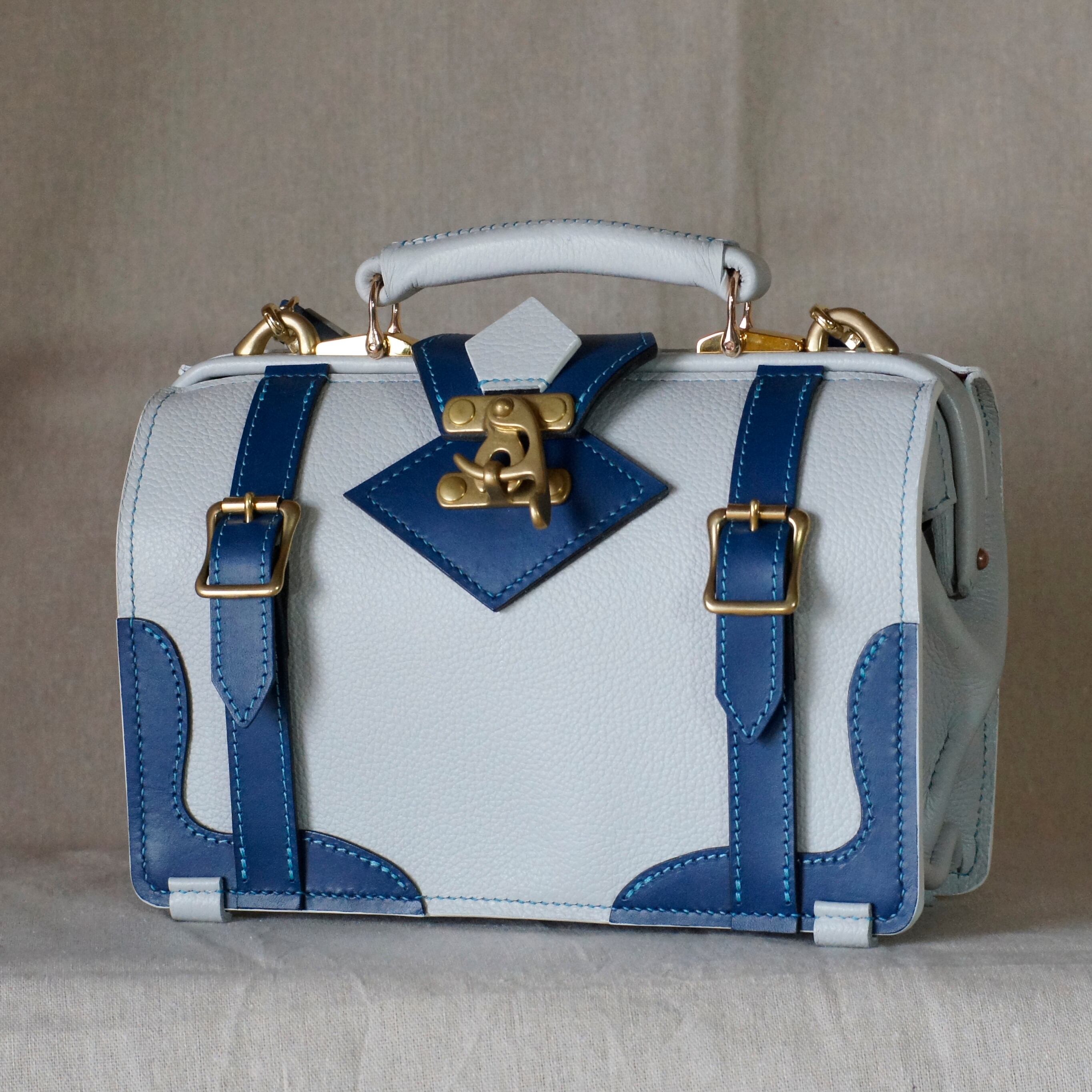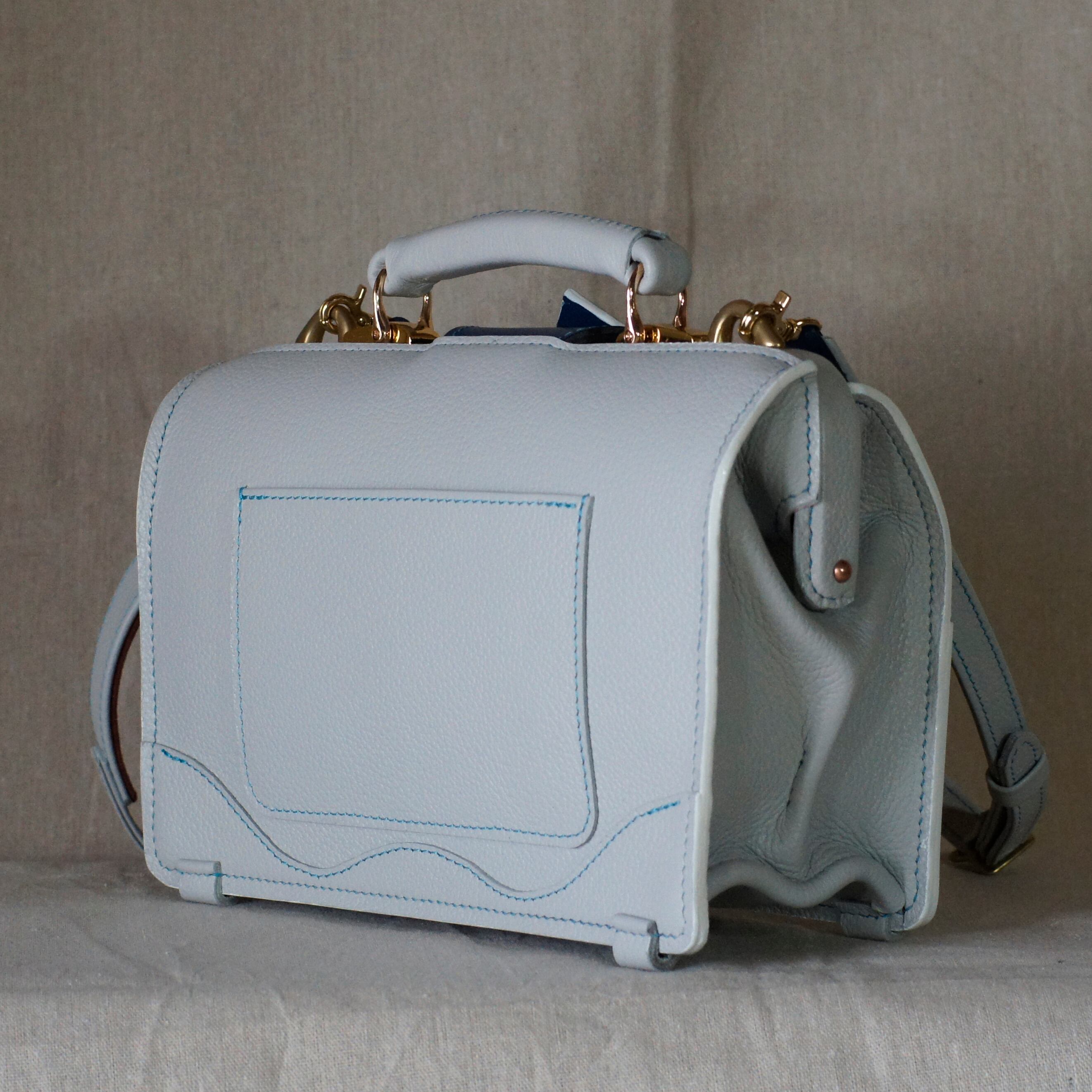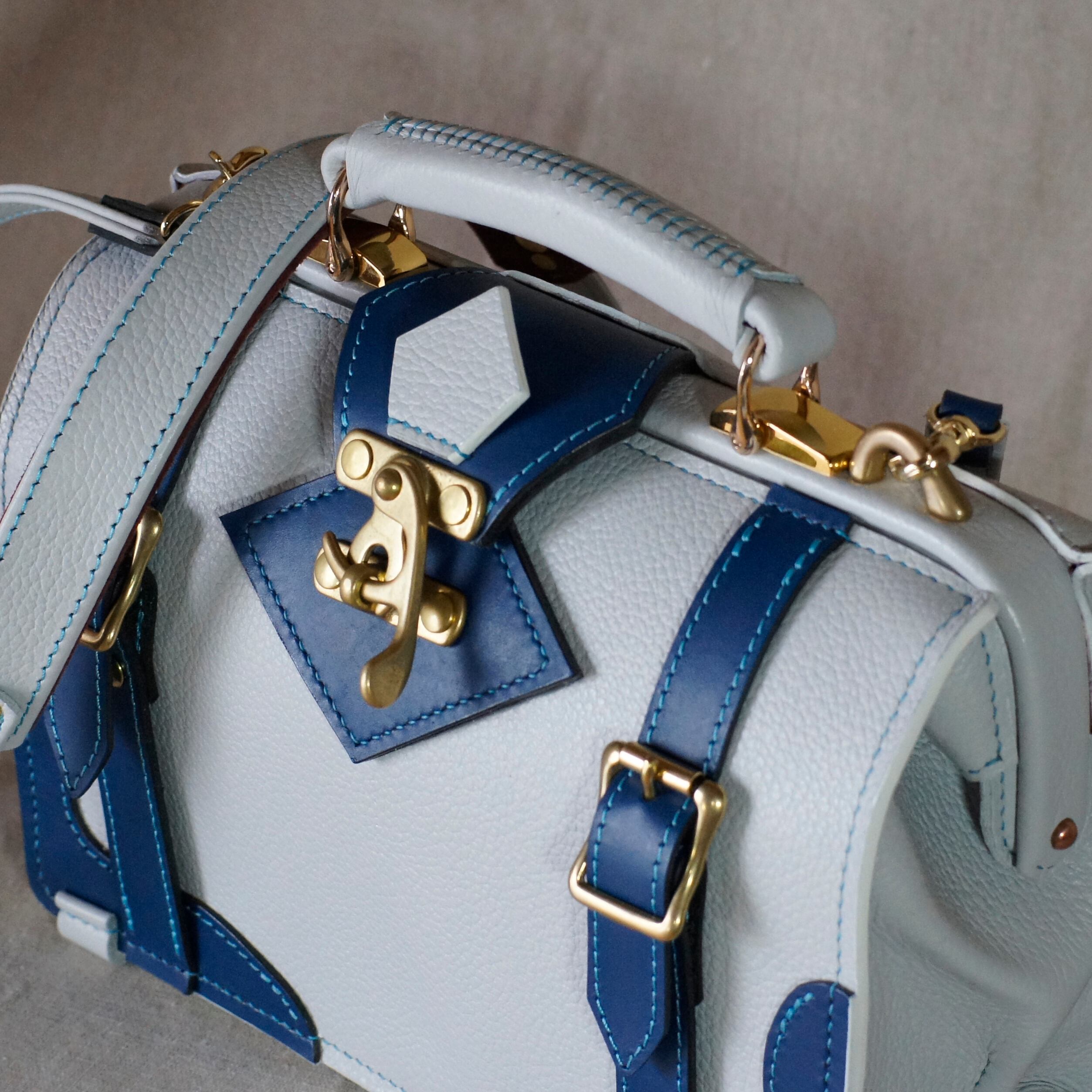 アイスグレーのシボ革をダレスバッグに仕立てました。