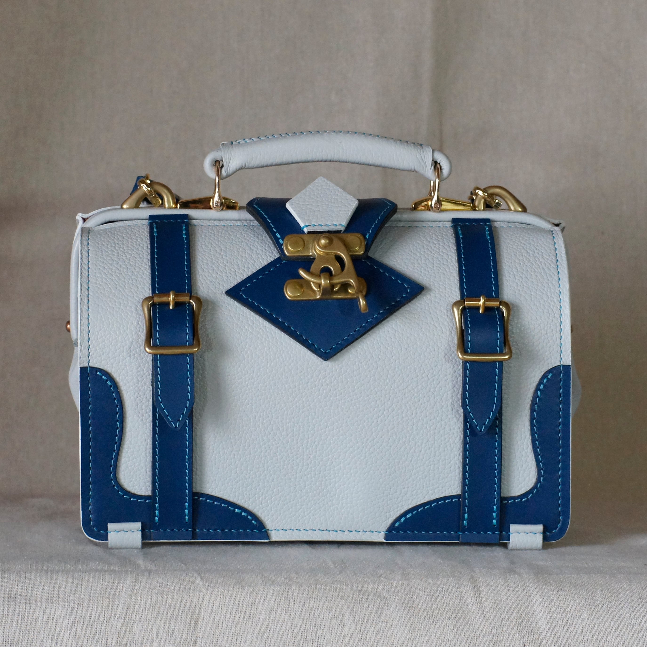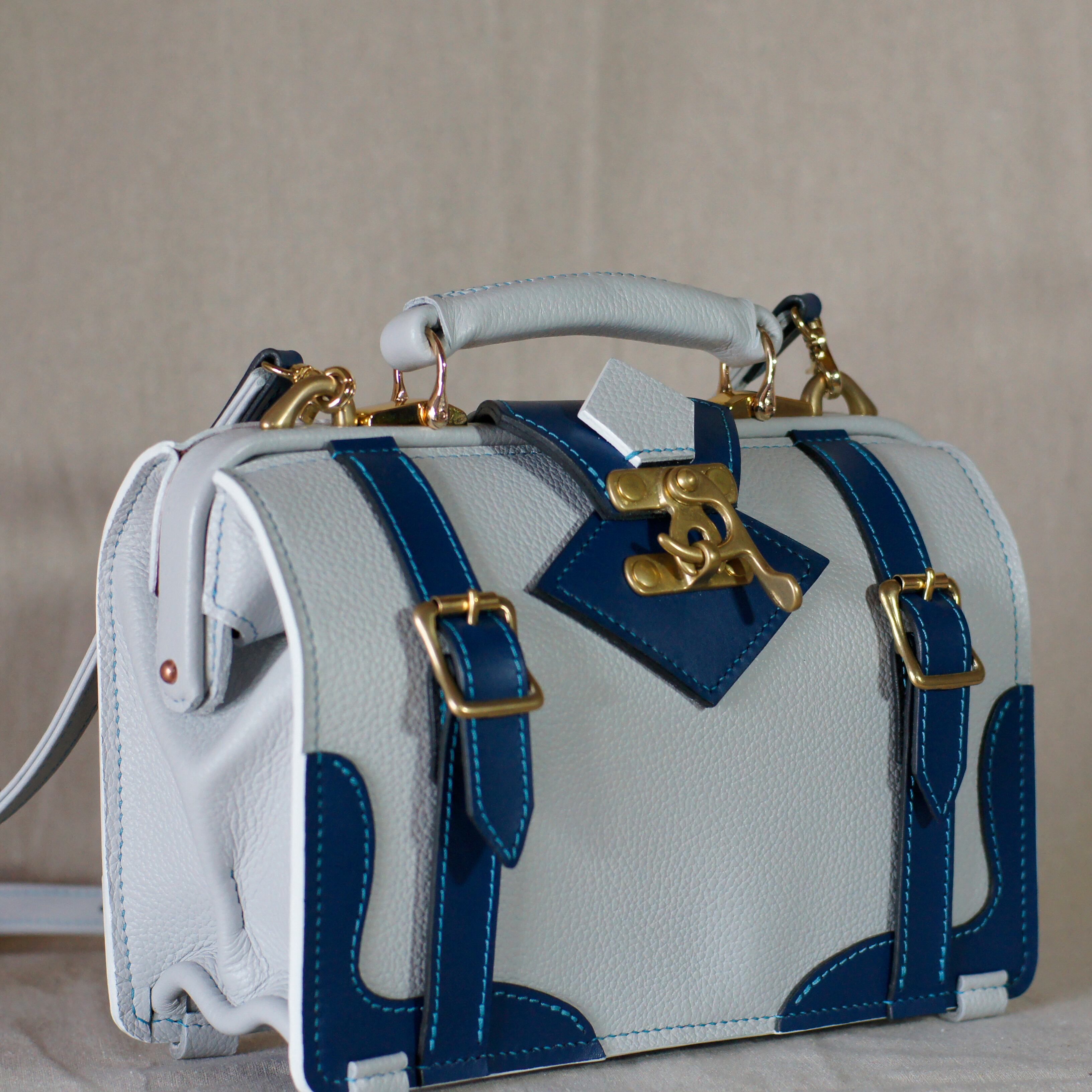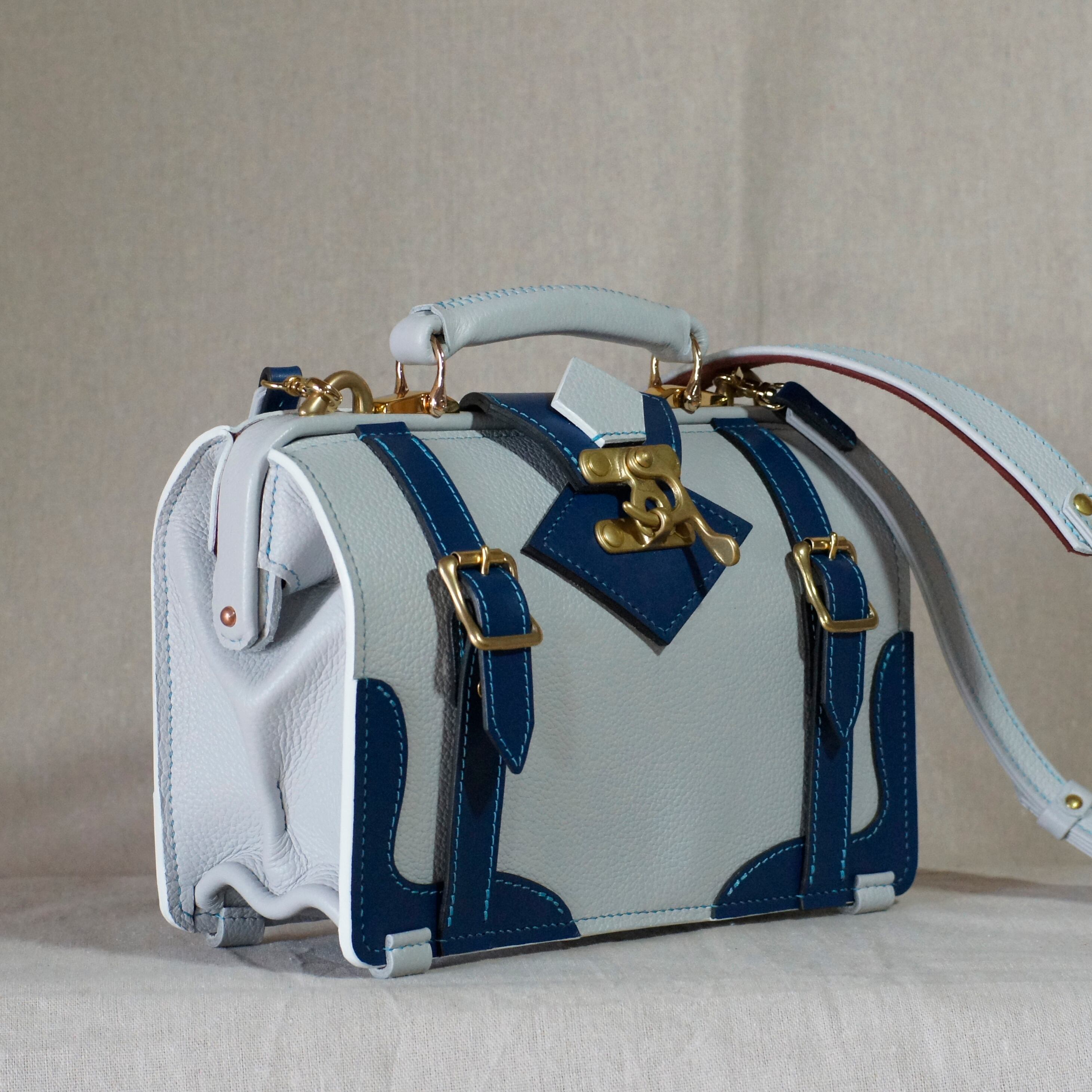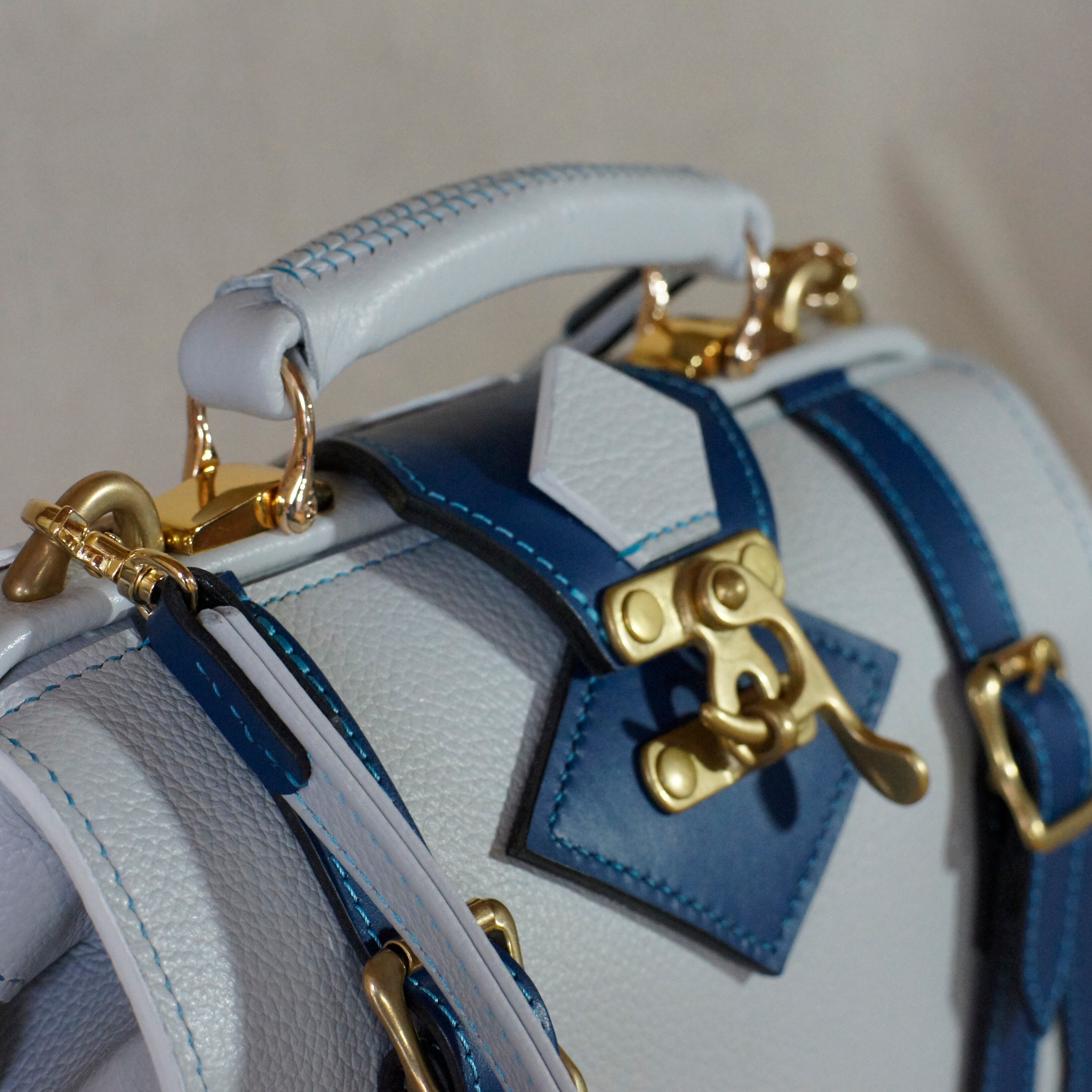 アイスグレーのシボ革をダレスバッグに仕立てました。