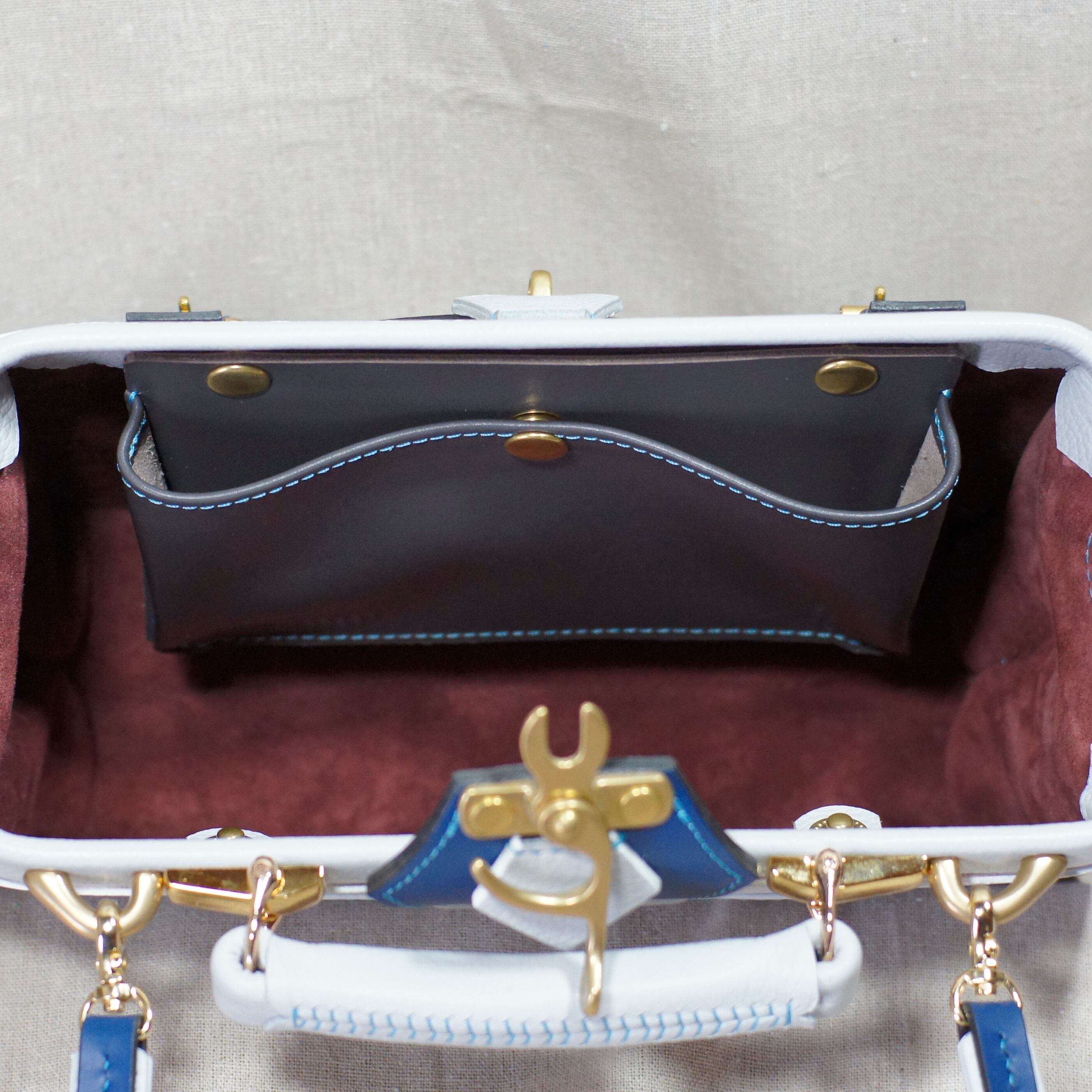 ダレスバッグならではの口金式の開口部は、金具を外すことで大きく開き中身が一目で見渡せ出し入れもお手軽に行えます。