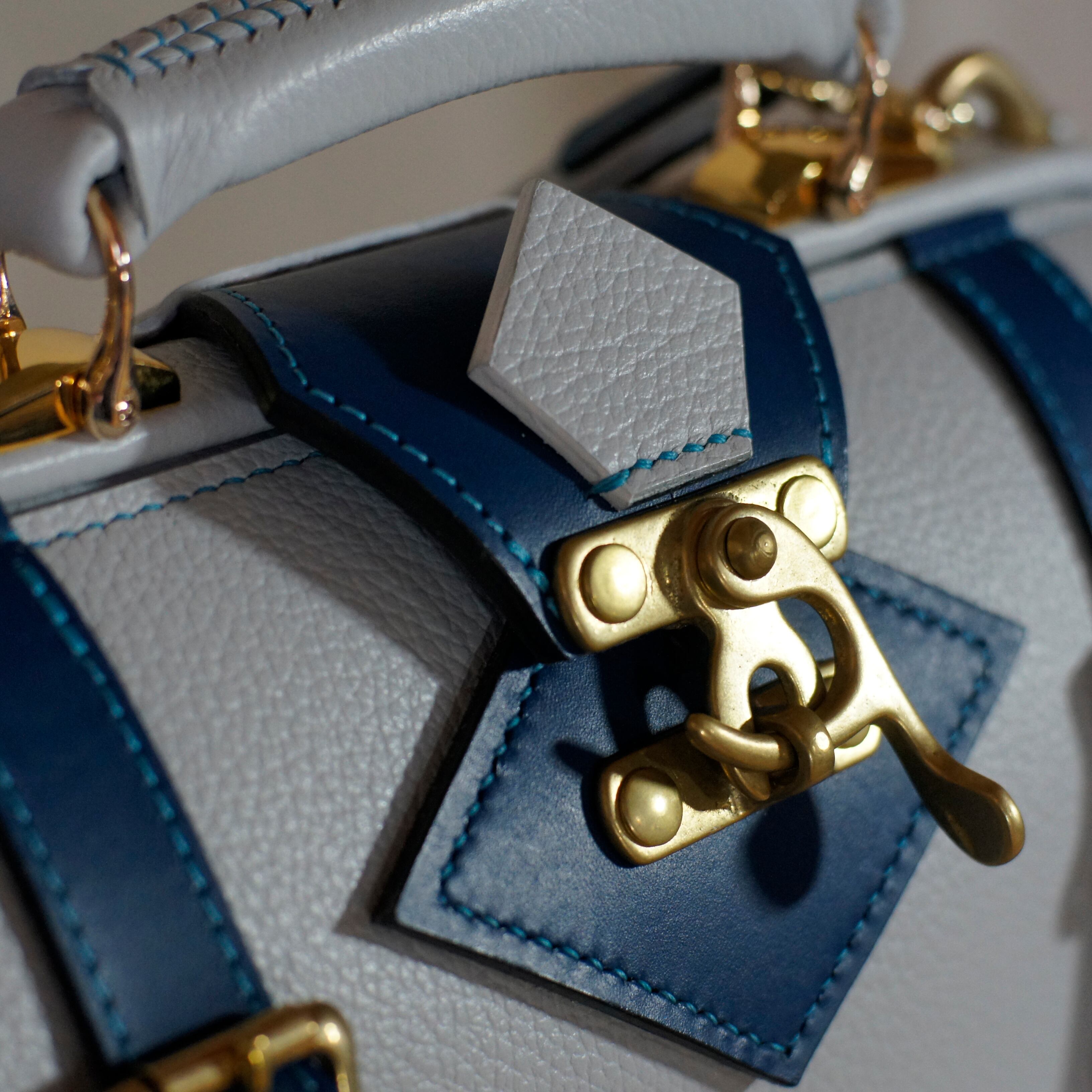 オーダー品 アイスグレー+ネイビーのダレスバッグ 送料無料