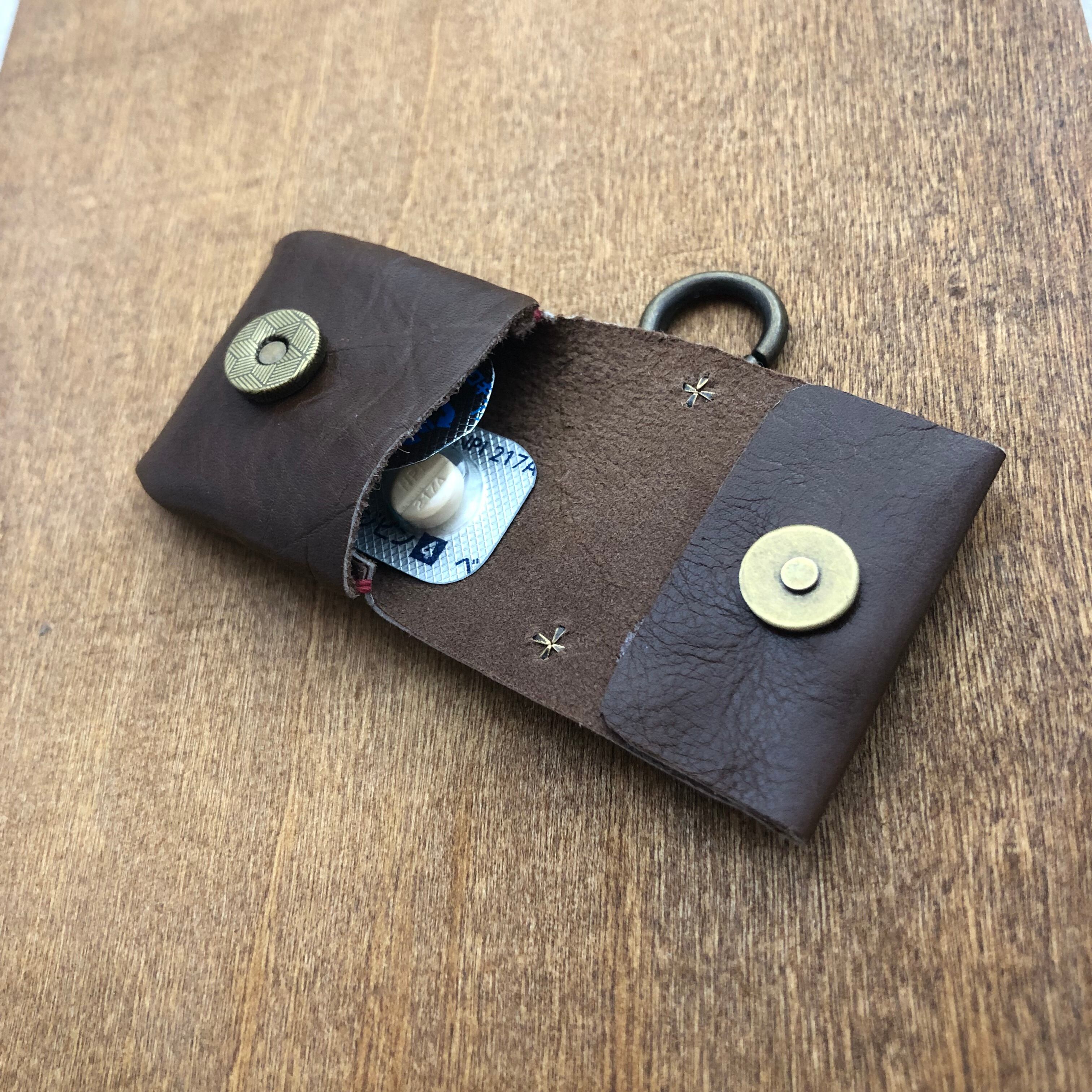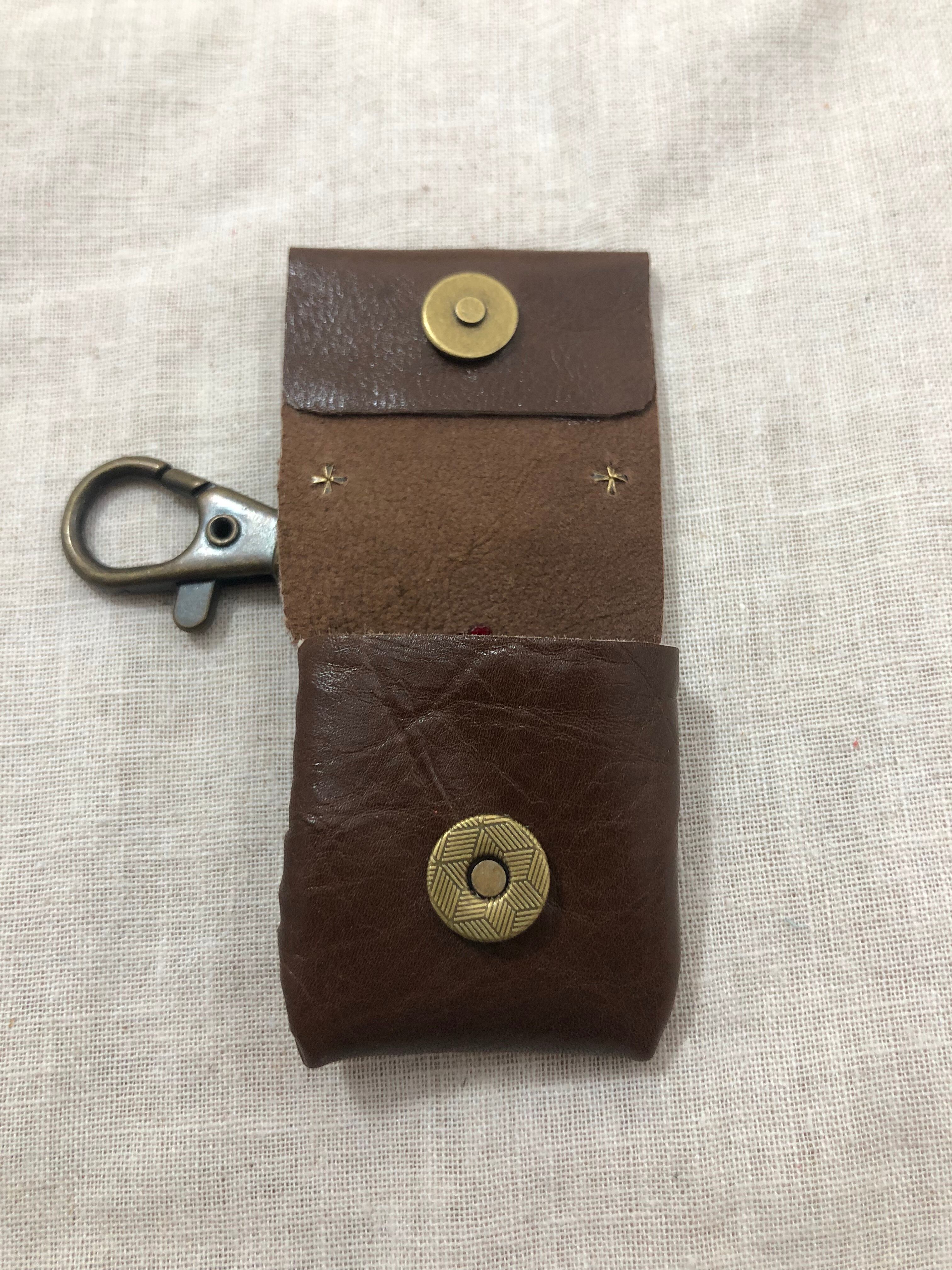 本革を丁寧に縫製しマグネットホックで開閉します。