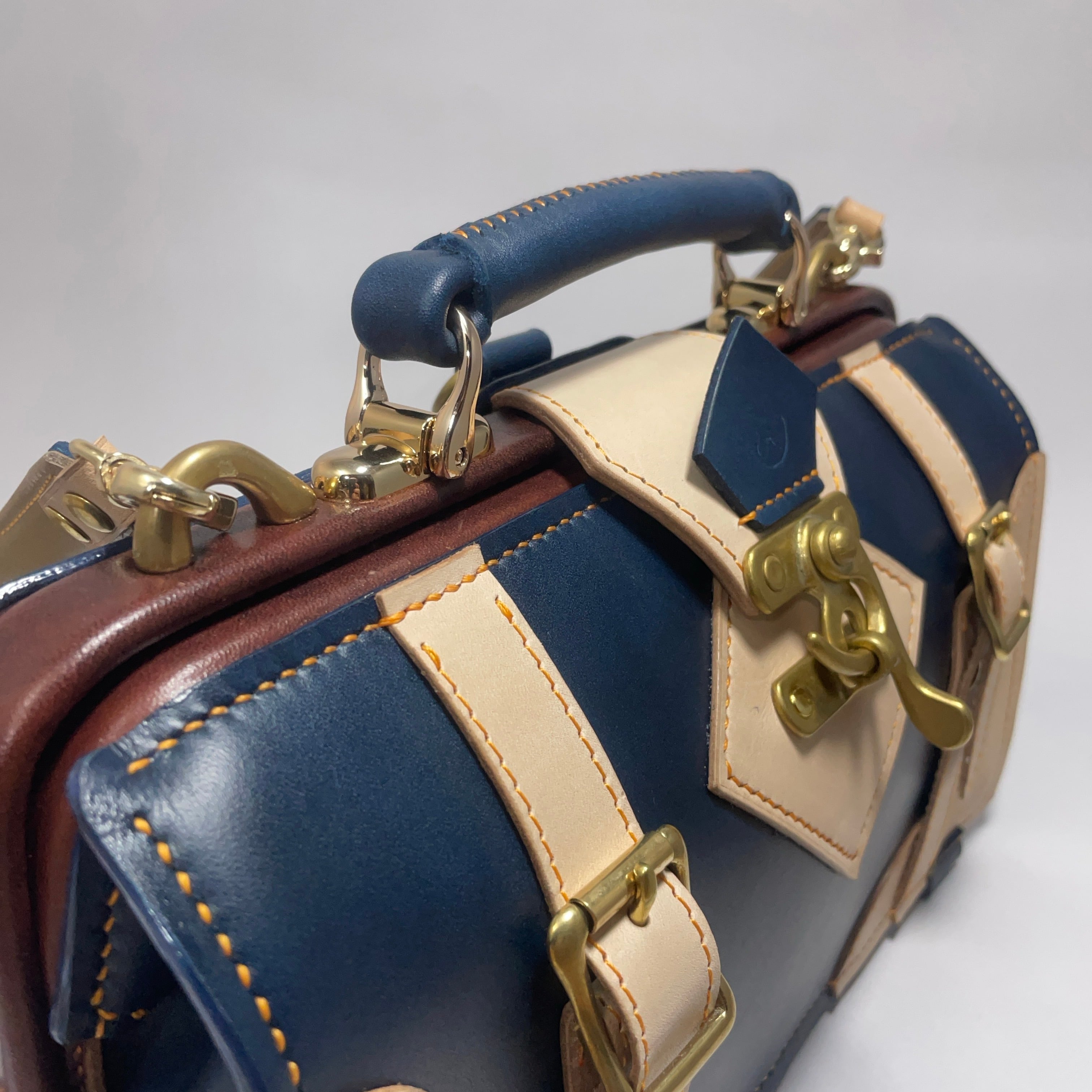 ムラ感のあるネイビーとヌメ革のコンビカラーのダレスバッグです